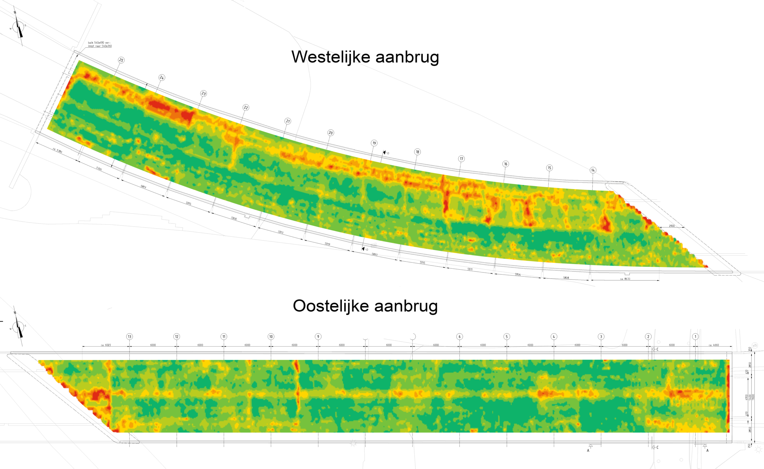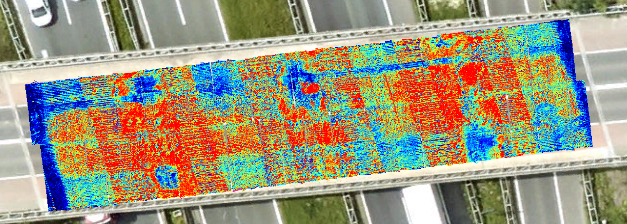 - Het inventariseren van de conditie van rijdekken onder asfaltverharding door het opstellen van corrosie-, dekking- en vochtkaarten (ASTM D6087-22).