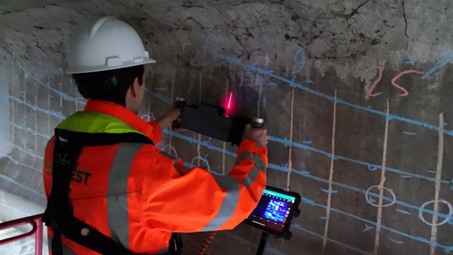 - Lokaliseren van de voorspanning met behulp van een betonradar.